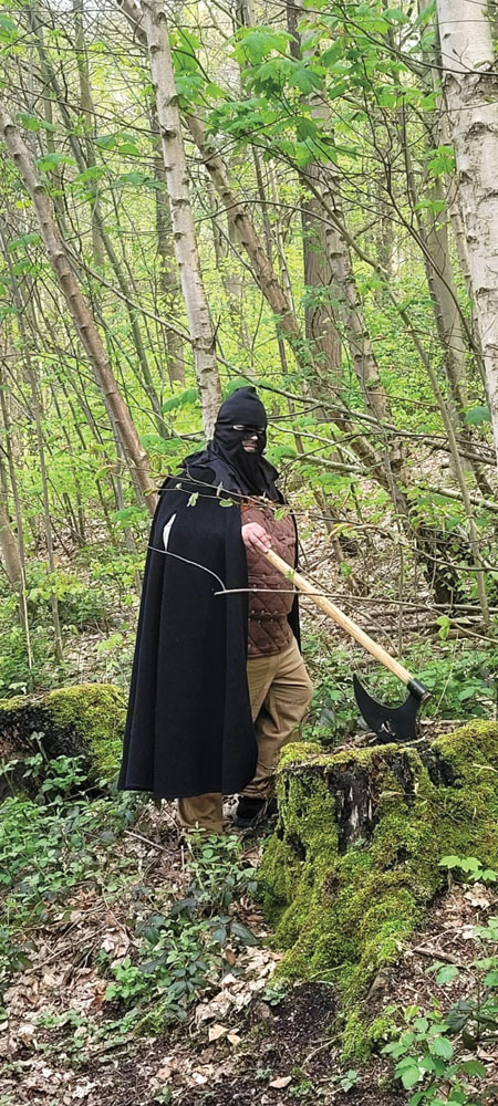 So werden Frank, Manuel, Alex und Andrew im Oktober 2025 ganz offiziell dabei sein, wenn auf dem Altstadtmarkt ein mittelalterliches Fantasie-Dorf entsteht. »Wir dürfen unsere Ideen einbringen, die Eröffnung begleiten, als Walking Acts auf dem Gelände umherstreifen und die Showkämpfe einrahmen.« Selbst kämpfen wollen sie allerdings nicht. »Dafür fehlt uns die Ausrüstung und die Erfahrung. Wir nehmen zwar Schwerter, Speere und Äxte mit, doch wir sehen uns eher als darstellende Künstler.« Innerhalb der Gruppe hat jeder seine Funktion: Frank ist der Hauptmann, Manuel der Henker, Andrew und Alex sind Spießträger. Moment mal – was für Träger? »Das sind die Leute, die in Mittelalterfilmen rechts und links vor den Toren stehen und tun, als wären sie wichtig«, scherzt Manuel.