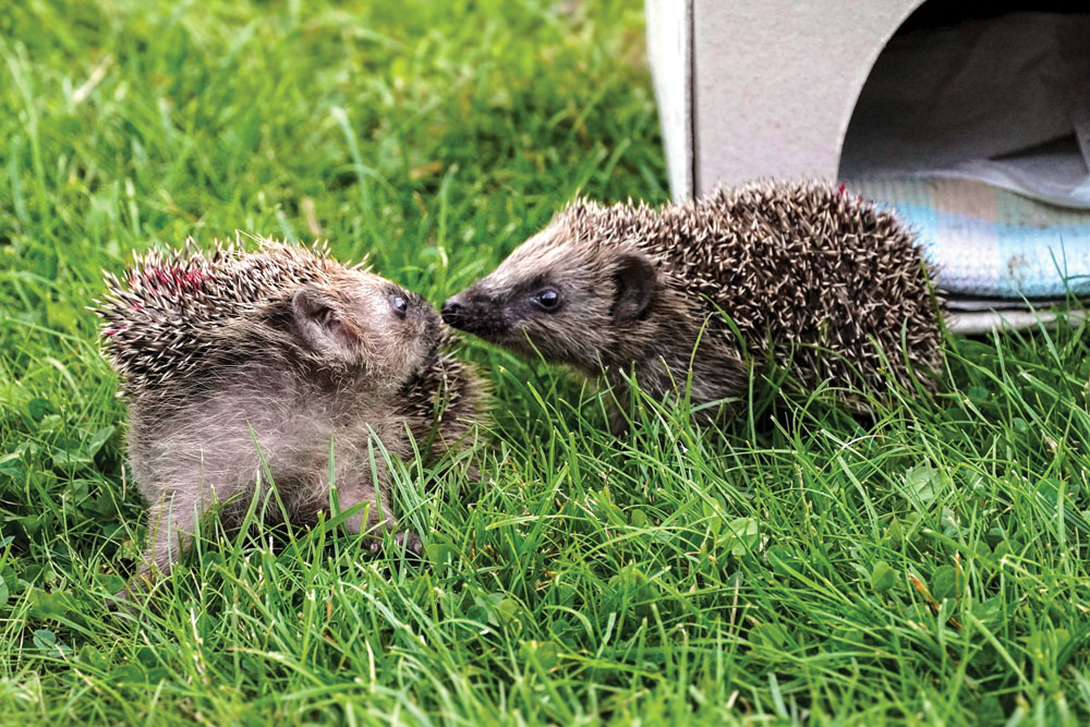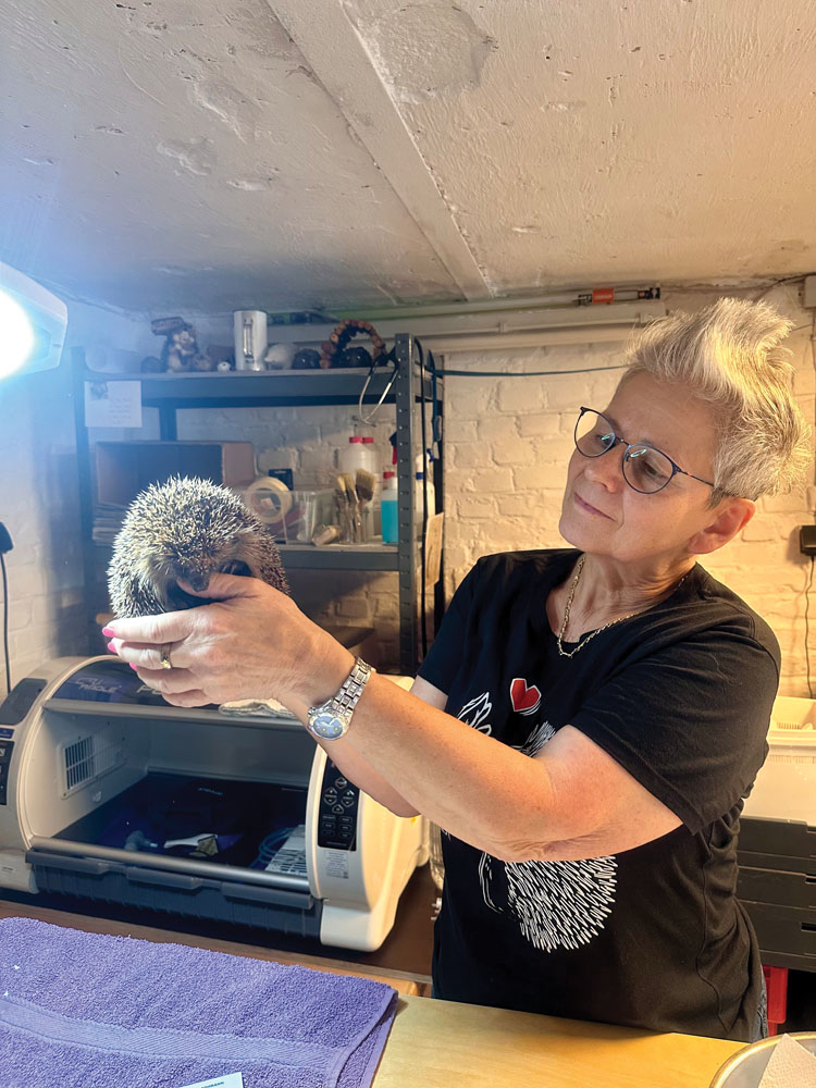 Inzwischen ist sie selbst eine gefragte Expertin. Im Keller ihres Hauses in Lünen-Horstmar befindet sich ein eigens gebautes ›Igelkrankenhaus‹ mit einem Dutzend Übernachtungsplätze. Hier werden Neuankömmlinge von Parasiten wie Zecken und Flöhen befreit, ›medizinisch‹ versorgt und liebevoll aufgepäppelt. »Durch Klimaveränderungen und das Insektensterben finden Igel kaum Nahrung, können keine ausreichenden Fettreserven anlegen und erwachen zu früh aus dem Winterschlaf«, erklärt Marion Rautert. »Häufig sind sie stark abgemagert, haben Husten und Schnupfen, entzündete Augen oder Durchfall – oder gleich alles zusammen.« Andere scheitern an der modernen Umwelt: versiegelte Flächen, fehlende Rückzugsorte, Störungen durch Gartenarbeiten. Früher waren Eulen und Füchse ihre größten Feinde – heute sind es Mähroboter, Freischneider und Co. »Statt zu fliehen, rollen sie sich bei Gefahr zusammen. Werden sie im Gebüsch überfahren, erleiden sie einen langsamen, qualvollen Tod. Ein Igel erträgt seinen Schmerz stumm.«