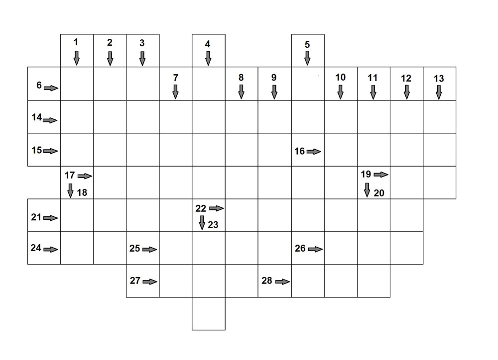 1 eines Viktoriastr. 5, so manches Willy-Brandt-Platz 1. 2 Drin bleiben sorgt für Zufriedenheit, rausfallen für Belustigung, sprengen für Ärger. Reimt sich auf Ortsteil. 3 Der Ruf des Wühltisches: »… zu!« 4 Du... (=Männe) und die deine, also …, singt ihr zweistimmig(e)? 5 Kennzeichnet Vor-Vorfahren. In ›Kler‹ eingefügt wird Straßenname draus. 6 Die list, die fies und justiziabel. 7 Kurt-Schumacher-Str. 5: Links neben dem Eingang steht auch so'n Schwarz-Gelber 8 Hört man sich nur in der Kirche freiwillig an. 9 In Lünens public areas (besides ›Forst‹) there are about 32.000 of them! 10 vor den Nächten 11 vervollständigt ›...danstraße‹ 12 kann man alle ansprechen, wenn man sie beisammen hat. 13 Damit wechselt der Micha das Geschlecht. 14 Mündet in Willy-Brandt-Platz. 15 Vorhang auf im H.-H.-…! 16 kleiner als die mit dem schlechten Benehmen im Walde; zeugt vor eid von traurigem Ereignis. 17 »Auf die Knie, denn jetzt heißt es ›Erbarme dich!‹«, gilt bei den RÖMISCH-Katholischen. 18 Sangen die Schlümpfe in jedem Refrain 132 Mal. Abkürzung in Kalifornien, wo der Bieber wohnt. 19 Damit wird gut eher widerwillig. 20 Nicht betreten im Winter, sonst wirst du zum Einbrecher! 21 Der US-Tourist hatte in der City just die Lippe überquert und fand sich nun in der Münsterstraße wieder, wo er einen Einheimischen nach der ›Gardenstreet‹ fragte. »The next street to your …!«, antwortete dieser. 22 »Ihr Gedichtband hat mir gut gefallen, Herr Ringelnatz.« »Danke«, antwortete Herr Tucholsky, »aber ich fürchte, dass Sie gar nicht … …!« 23 fox on the what? 24 ... der Fähre, … der Seilbahn, … der Wallhecke 25 der arme griechische Gott muss namentlich selbst für zwielichtige Center herhalten 26 … gibt’s ... eigentlich auch hier? Ähem, das weiß natürlich keiner. 27 … neigt das Rätsel sich dem Ende zu. 28 Rettet dem Genitiv sein Artikel!